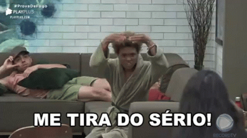 Woman passionately exclaims 'Me Tira Do Serio!' during a heated moment on the Brazilian reality show A Fazenda.