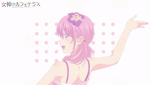 Anime opening featuring characters from Megami No Café Terrace, showcasing girls with changing hair colors and backgrounds.