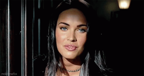 Megan Fox in a striking close-up, showcasing her captivating blue eyes and expressive face.