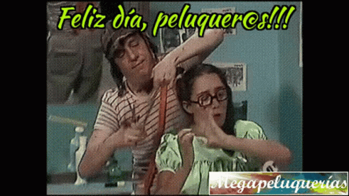 A humorous meme for Hairdresser's Day featuring Don Ramón and La Chilindrina from El Chavo del 8, promoting Megapeluquerias Ituzaingo.