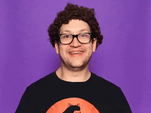 Megusta, a man with curly hair and glasses, enthusiastically gives a double thumbs up.