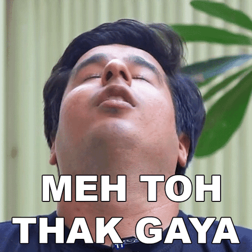 Umesh Kripalani, known as Kripz, with eyes closed and the viral 'Meh Toh Thak Gaya' text.
