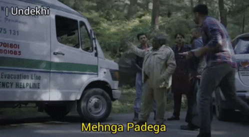 A man from the show Undekhi points and says 'Mehnga Padega' (It will be expensive) in a forest setting.
