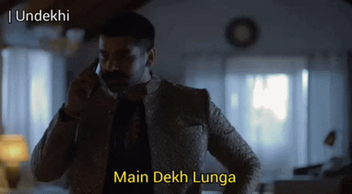 Man on phone saying 'Mein Dekh Lunga' from the show Undekhi by Applause Entertainment.