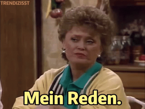 Blanche Devereaux from Golden Girls reacts with the German phrase "Mein Reden."