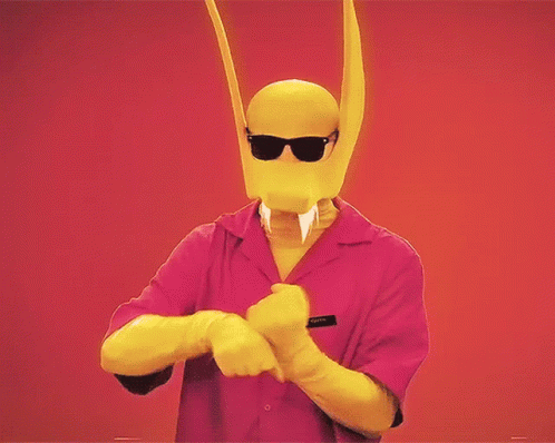 Subwoolfer character 'Justin' in pink shirt and yellow gloves, dancing to Melocoton.