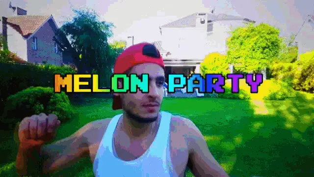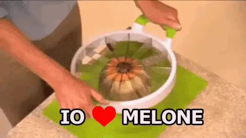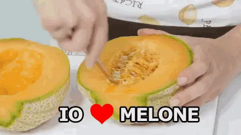 An adorable fluffy puppy happily sits inside a hollowed-out watermelon, with its paws sticking out.