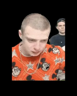 мелстрой (Mellstroy) makes exaggerated, funny facial expressions and gestures on a green screen.