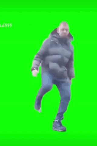 A person in a hooded jacket performs various dance moves and poses on a green screen background.