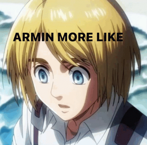 Armin Arlert from Attack on Titan featured in a popular meme comparing his name to an almond.