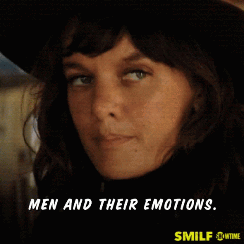 Frankie Shaw from SMILF gives an eyeroll reaction to 'Men And Their Emotions'.