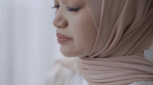 Nabila Lida is shown wearing a hijab, looking down, and then bringing her hands to her face, appearing to be crying or deeply sad.
