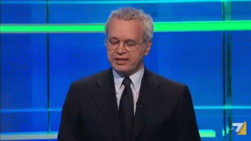 Enrico Mentana points while 'ATTENZIONE!' appears, followed by Giuseppe Conte at a press conference.