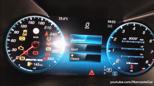 Exploring the digital dashboard display modes (Supersport, Sport, Classic) of a Mercedes-Benz AMG C63.