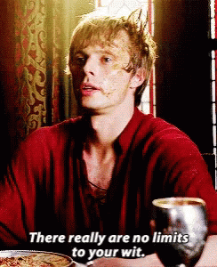 Merlin, covered in dirt, delivers a witty line: 'There really are no limits to your wit.'