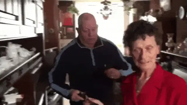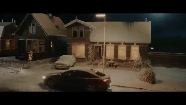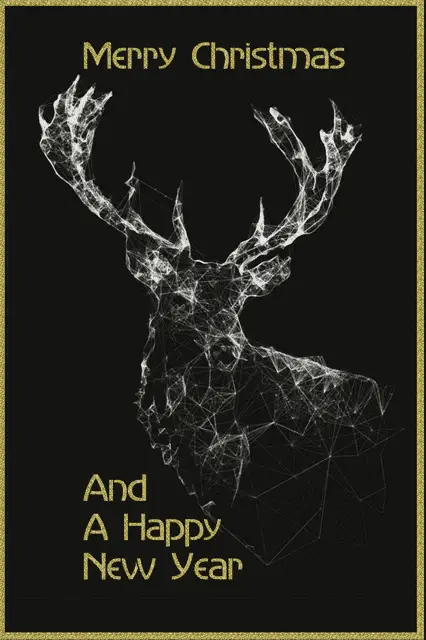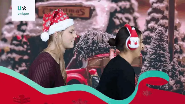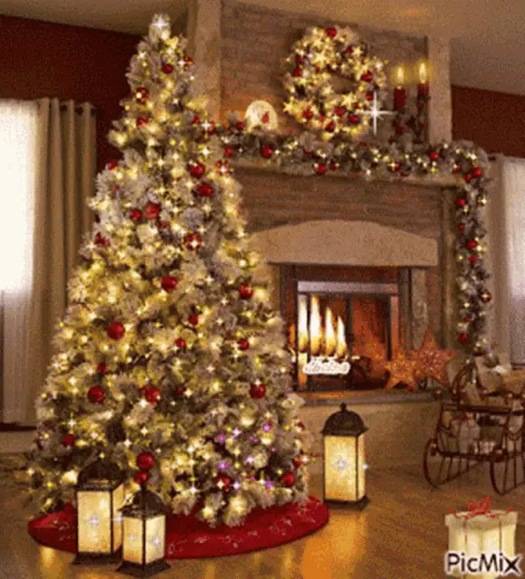 A man wishes Merry Christmas in a festive, snowy setting with a glowing lantern and decorations.