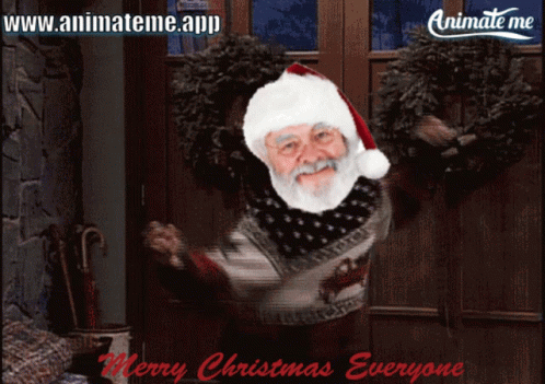 Santa Claus animatedly dances in a doorway, wishing everyone a Merry Christmas. From Animate Me app.