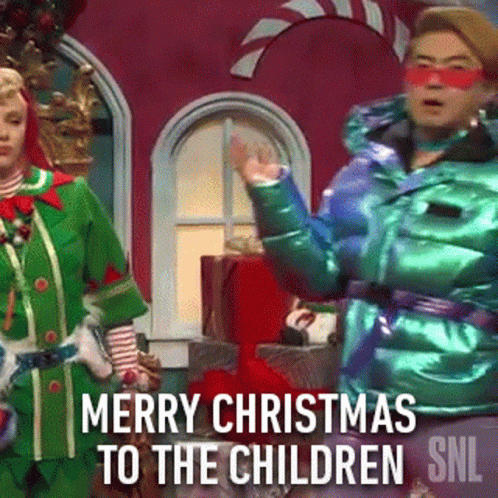 Bowen Yang delivers a festive 'Merry Christmas To The Children' message on SNL, wearing a shiny green puffer jacket.