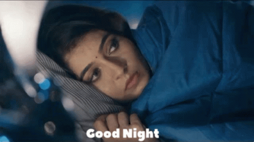Mhrw Pallu, wrapped in a blue blanket, lies in bed with "Good Night" text, looking thoughtful.