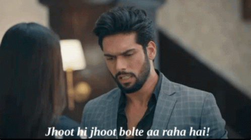 Raghavrao from Mhrw confronts a woman, accusing her of lying with the caption 'He has been speaking nothing but lies!'