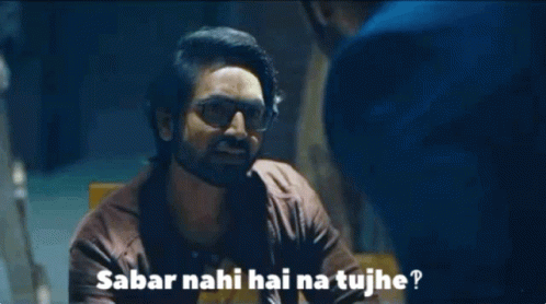 Mhrw Ved asks 'Sabar nahi hai na tujhe?' to another man, expressing impatience in a dramatic scene.