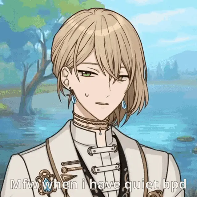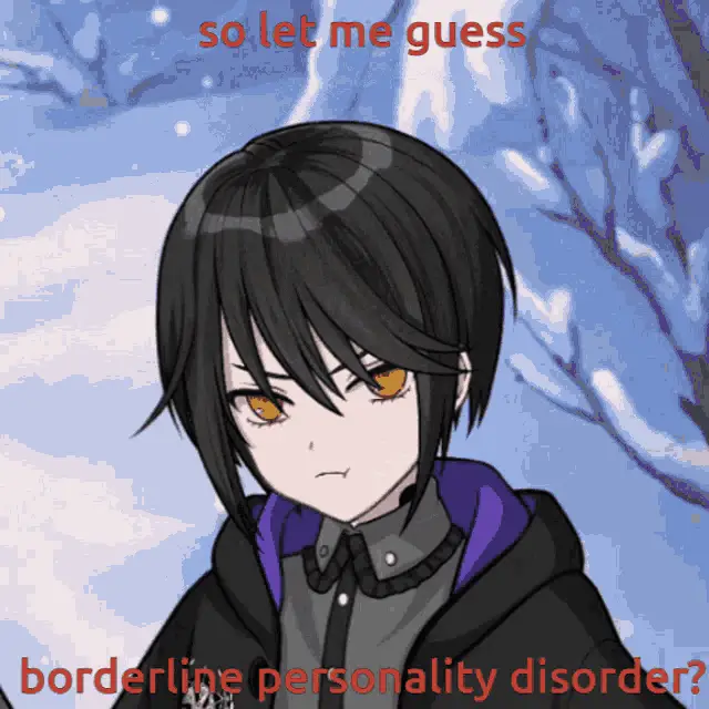 A plush toy of Mhyk Bradley Bain from Mahoyaku, featuring black and white hair and red eyes, moves its head.