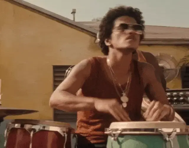 Cristiano Malgioglio, wearing a red suit and sunglasses, declares his love for rhythm.