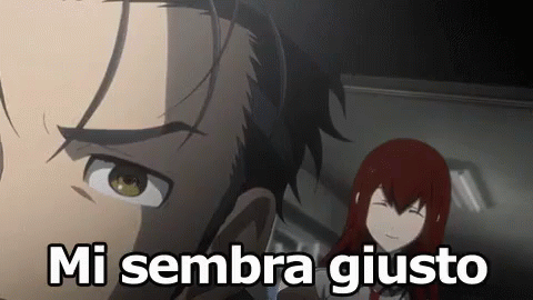 Anime characters in a dark room, with the Italian caption 'Mi sembra giusto' (It seems right to me).