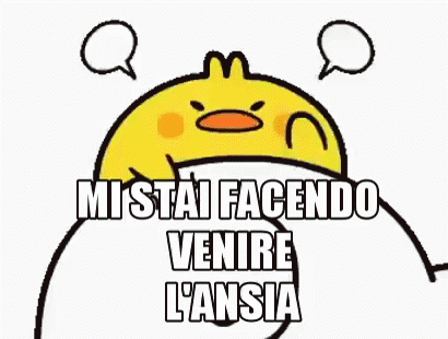 An angry cartoon duck with speech bubbles says 'You are making me anxious' in Italian.