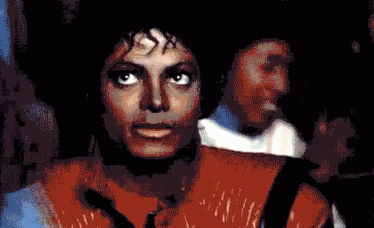 Michael Jackson eating popcorn and smiling, wearing a red jacket.