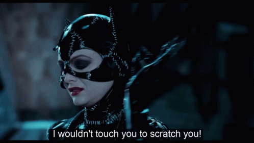 Michelle Pfeiffer as Selina Kyle (Catwoman) delivers a sharp line: 'I wouldn't touch you to scratch you!'