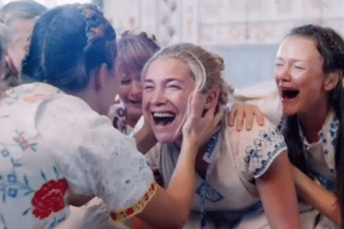 Florence Pugh's iconic emotional breakdown in Midsommar, transitioning from intense crying to a manic laugh.