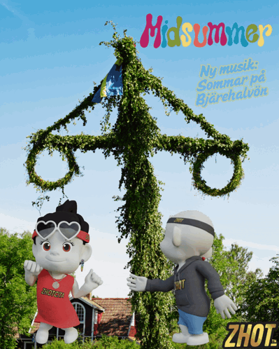 a poster for midsummer shows a couple of cartoon characters