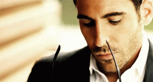 Miguel Angel Silvestre, portraying Frank Jurado, holds his glasses with a captivating gaze.