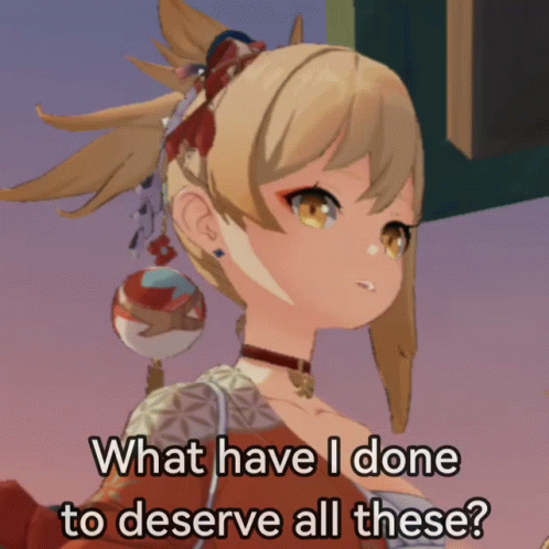 Yoimiya from Genshin Impact asks 'What have I done to deserve all these?' in this emotional clip.