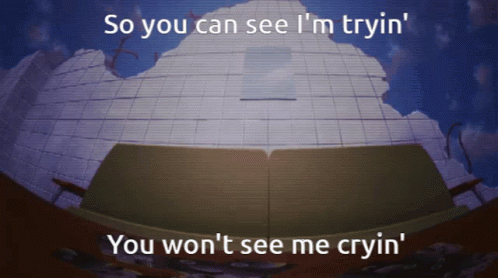 Mikoto Kayano related content featuring the lyrics "So you can see I'm tryin' You won't see me cryin'".