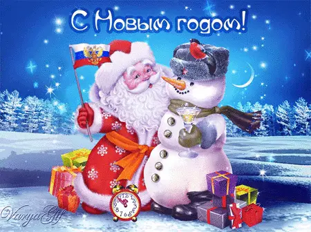 Милая новогодняя открытка со снеговиками-2