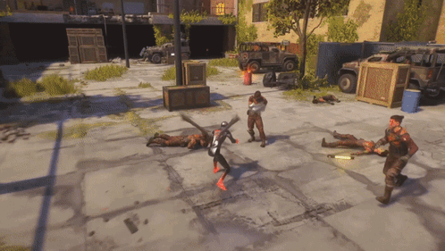 a video game scene with a man holding a sword