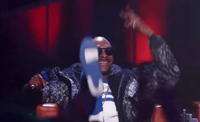 Miley Cyrus with dreadlocks and a furry headband talking to Snoop Dogg in a white t-shirt.