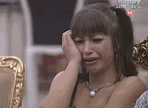 Miljana Kulić is seen crying, visibly upset about the end of a reality show, possibly 'Parovi'.
