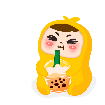 Cici, the adorable cartoon character from Ciciteam, happily sips on a delicious bubble milk tea, exclaiming 'Yum!'