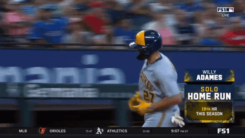 Willy Adames hits a solo home run, his 19th of the season, for the Milwaukee Brewers.