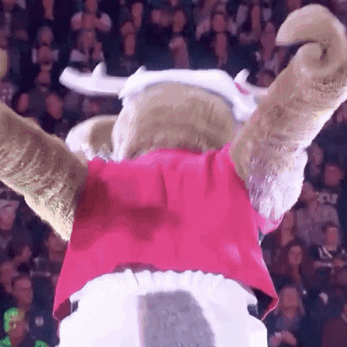 Milwaukee Bucks mascot Bango performs an impressive backflip in a festive Christmas outfit on the basketball court.