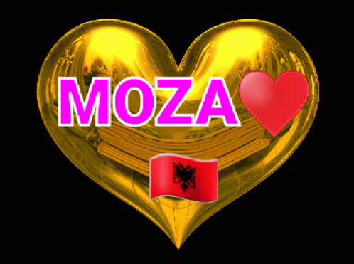 Golden heart animation with 'MOZA' text and the Albanian flag, symbolizing love or national pride.