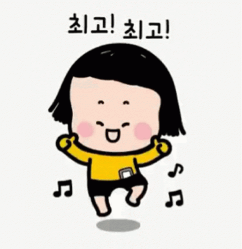 A cute cartoon girl from Mimosa Time Line Sticker dances happily with music notes around her.