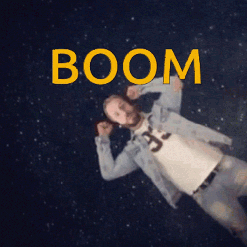 A man with a beard reacts with a surprised, 'mindblown' expression as a galaxy appears behind him, with 'BOOM' text.