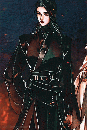 Ming Yi, the Earth Master from Heaven Officials Blessing (TGCF), depicted in a striking black outfit with intricate details.