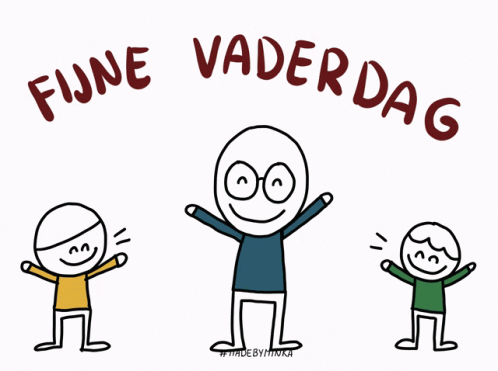 An animated drawing by Minka Madebyminka celebrating Father's Day, showing a father hugging his two children with hearts.