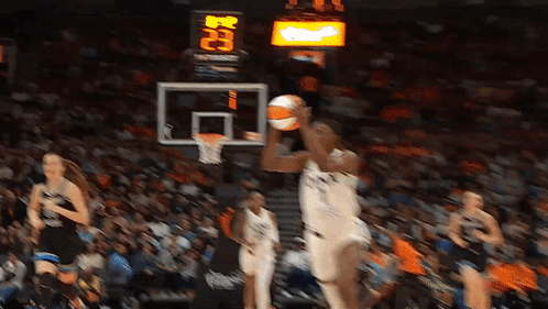 Minnesota Lynx player Diamond Miller drives to the basket for a layup during a WNBA game.