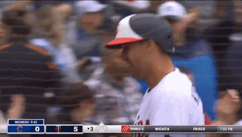 Alex Kirilloff celebrates a play for the Minnesota Twins during a baseball game.
